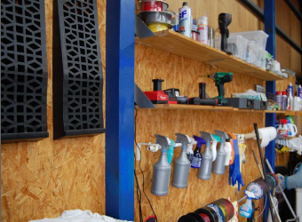 お店も小さいながらも十分なスペース。隅々まで整理されていて、愛車を預けるお客さんも安心なのではないでしょうか。